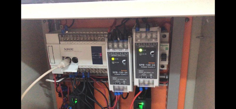Control de 2 Motores a Pasos con PLC XINJE y Pantalla TouchWin controlar dos direcciones en X y Y adicional se colocó un motor eléctrico monofásico 110v.