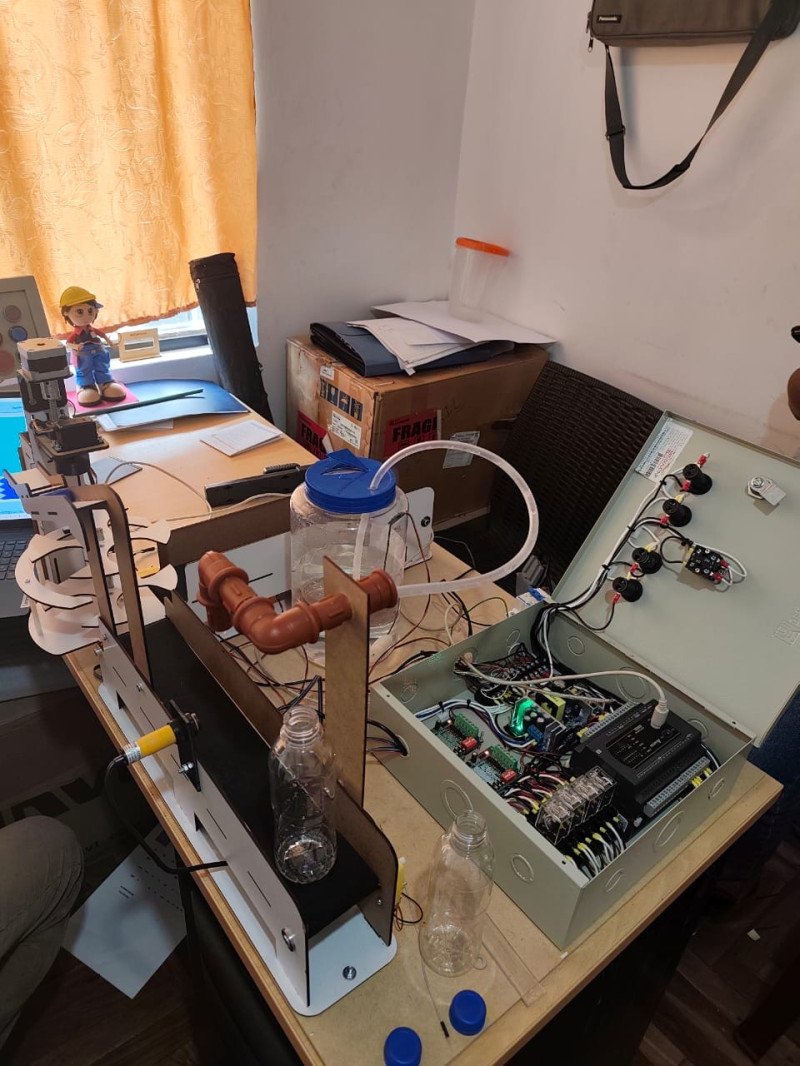 En diseño y corte de piezas en MDF para el armado de la parte de fabricación industrial de estrella y colocación de elementos en cada una de sus partes como: servomotores, motores y bomba para el tanque de dosificación.