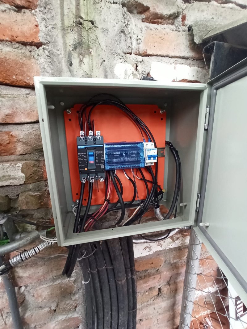adicional se realizó la instalación del tablero de fuerza y control de la acometida para el ingreso tanto de EQQ Y GENERADOR A GAS. Donde podemos observar el cambio de interruptor que realiza al momento de detectar el voltaje sea de EQQ O GENERADOR.